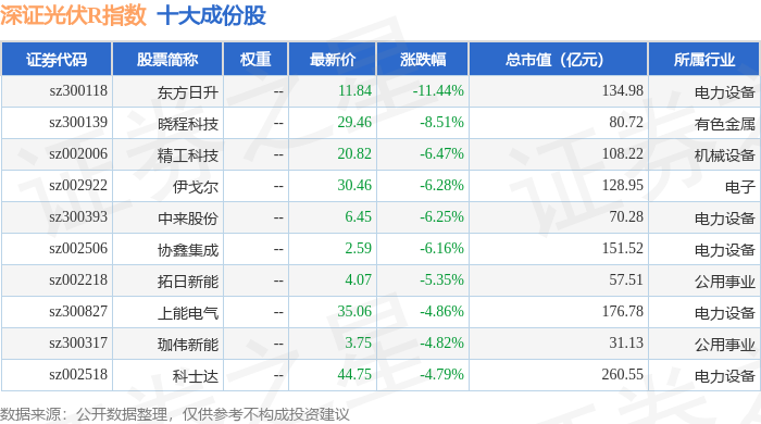 近10日内深证光伏R(470035)指数成份股做了调整,新纳入了5只股票,剔除了6只股票。