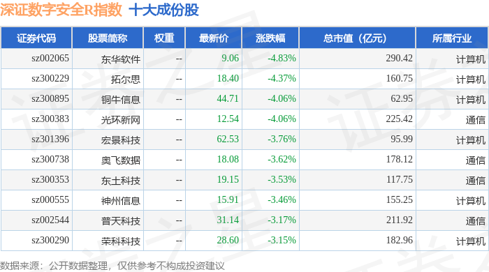 资金流向方面,深证数字安全R(470052)指数成份股当日主力资金净流出合计3.26亿元,游资资金净流入合计332.07万元,散户资金净流入合计3.23亿元。成份股资金流向详情见下表: