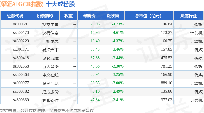 深证AIGCR(470075)指数十大成份股详情如下: