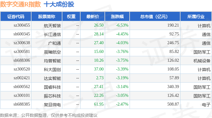近10日内数字交通R(480075)指数成份股做了调整,新纳入了1只股票,剔除了1只股票。