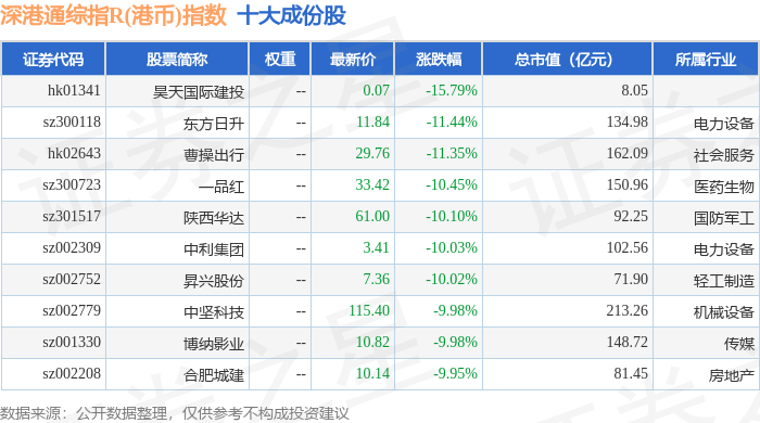 深港通综指R(港币)(483006)指数十大成份股详情如下: