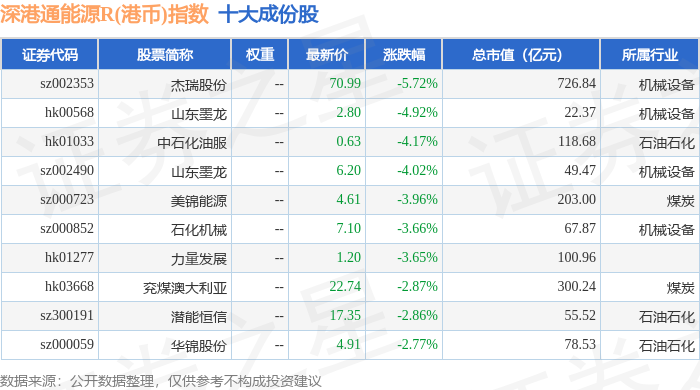 深港通能源R(港币)(483014)指数十大成份股详情如下: