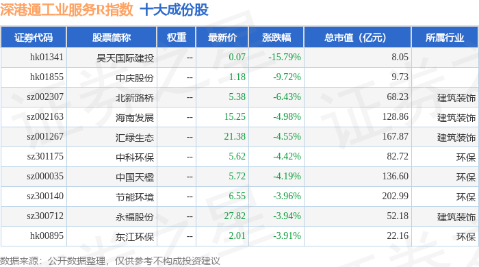 深港通工业服务R(483055)指数十大成份股详情如下: