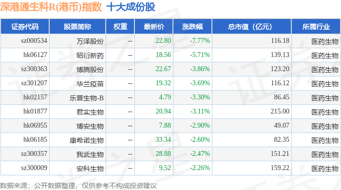深港通生科R(港币)(483060)指数十大成份股详情如下: