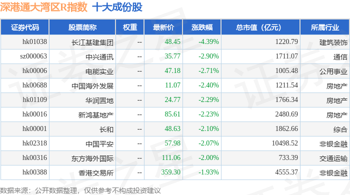 深港通大湾区R(483089)指数十大成份股详情如下: