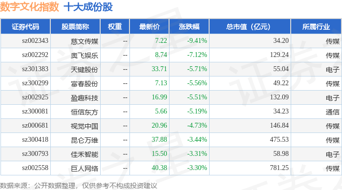近10日内数字文化(970047)指数成份股做了调整,新纳入了5只股票,剔除了5只股票。