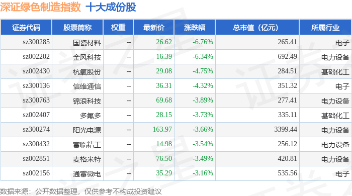 近10日内深证绿色制造(970069)指数成份股做了调整,新纳入了5只股票,剔除了5只股票。