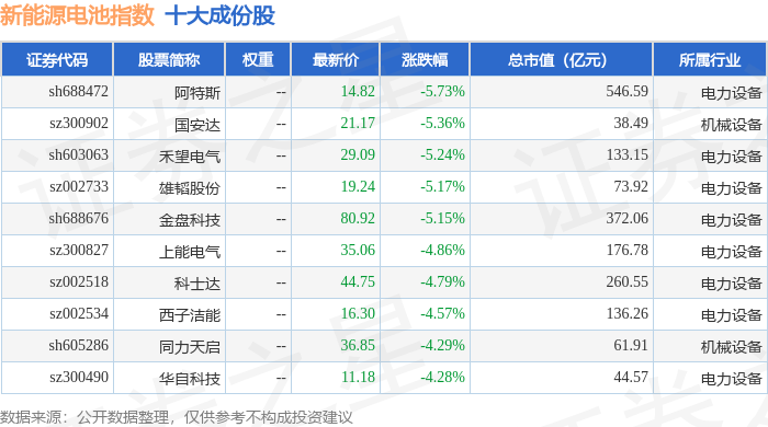 新能源电池(980027)指数十大成份股详情如下: