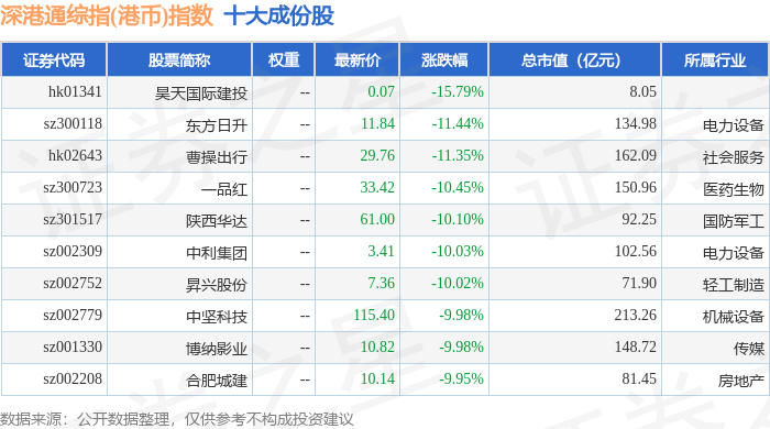 深港通综指(港币)(983006)指数十大成份股详情如下: