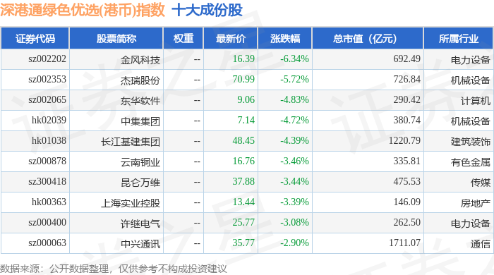 深港通绿色优选(港币)(983012)指数十大成份股详情如下: