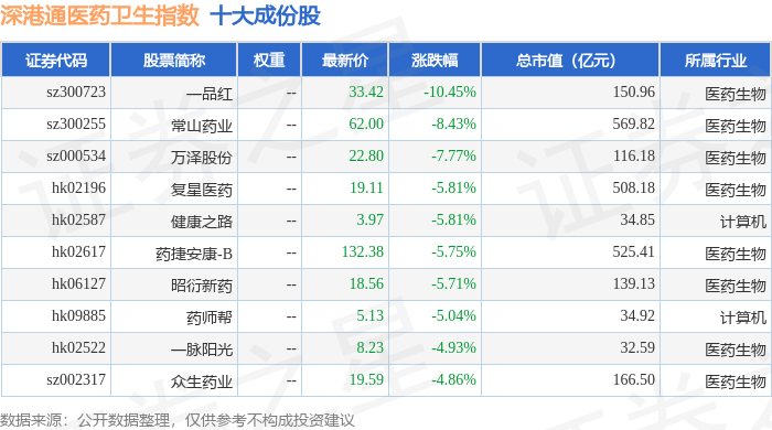 深港通医药卫生(983023)指数十大成份股详情如下: