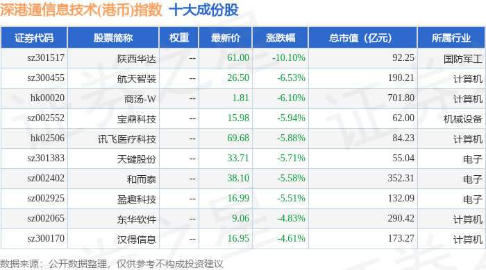 深港通信息技术(港币)(983028)指数十大成份股详情如下: