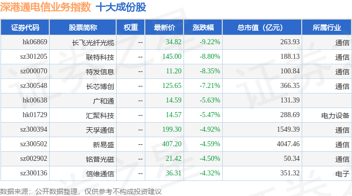 深港通电信业务(983029)指数十大成份股详情如下: