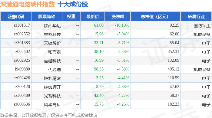 深港通电脑硬件(983043)指数十大成份股详情如下: