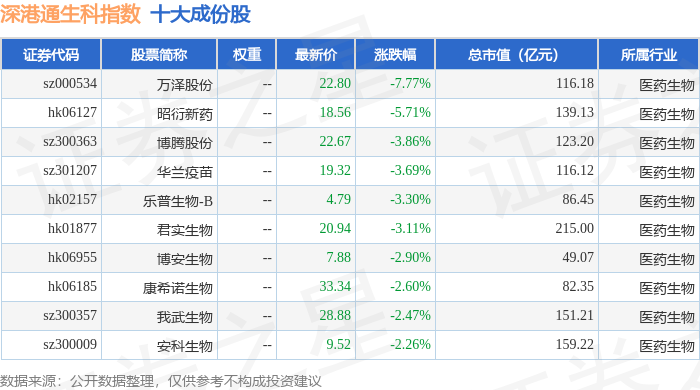 证券之星消息,12月16日,深港通生科(983059)指数报收于7014.81点,跌0.69%,成交119.03亿元,换手率0.81%。当日该指数成份股中,上涨的有14家,长春高新以3.77%的涨幅领涨,下跌的有46家,万泽股份以7.77%的跌幅领跌。