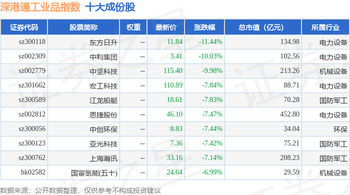 深港通工业品(983069)指数十大成份股详情如下: