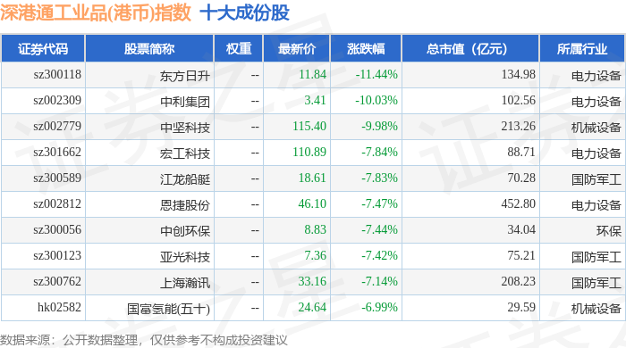 深港通工业品(港币)(983070)指数十大成份股详情如下: