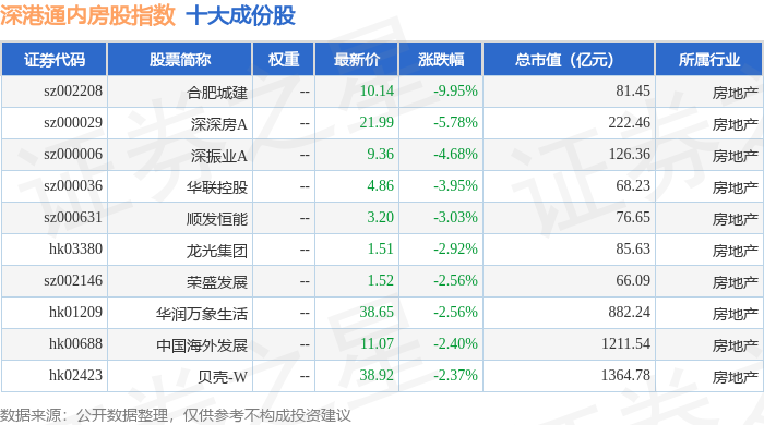 近10日内深港通内房股(983083)指数成份股做了调整,剔除了2只股票。