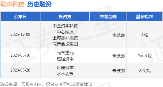 证券之星消息,根据天眼查APP于12月9日公布的信息整理,杭州荷声科技有限公司A轮融资,融资额未披露,参与投资的机构包括中金资本私募,中芯聚源,上海拙朴投资,高新金投集团。