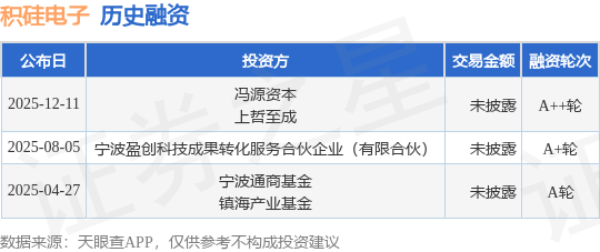 证券之星消息,根据天眼查APP于12月11日公布的信息整理,宁波积硅电子材料有限公司A++轮融资,融资额未披露,参与投资的机构包括冯源资本,上哲至成。