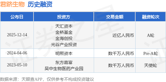 证券之星消息,根据天眼查APP于12月14日公布的信息整理,苏州君跻基因科技有限公司A轮融资,融资额近亿人民币,参与投资的机构包括天汇资本,金桥基金,金海创投,光谷产业投资。