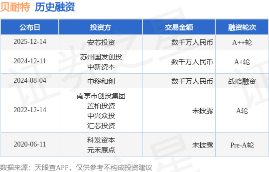 证券之星消息,根据天眼查APP于12月14日公布的信息整理,贝耐特光学科技(苏州)有限公司A++轮融资,融资额数千万人民币,参与投资的机构包括安芯投资。