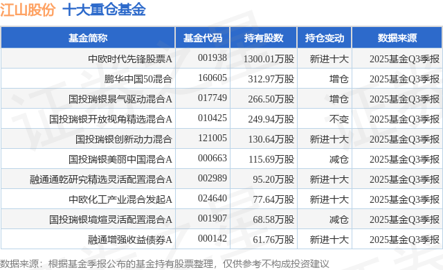 重仓江山股份的前十大公募基金请见下表:
