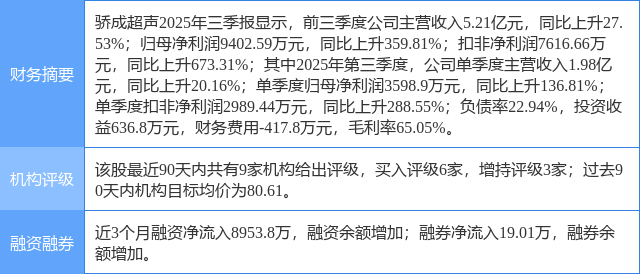 2025年10月30日,东吴证券研究员曾朵红,阮巧燕,朱家佟发布了对骄成超声的研报《2025年三季报点评:业绩符合预期,先进封装实现突破》,该研报对骄成超声给出“买入”评级。研报中预计公司25-27年归母净利1.3/2.4/4.1亿元(此前预期1.5/3.0/5.0亿元),同比+57%/+75%/+72%,对应PE99/57/33x,维持“买入”评级。证券之星数据中心根据近三年发布的研报数据计算,该研报作者对此股的盈利预测准确度为72.59%。