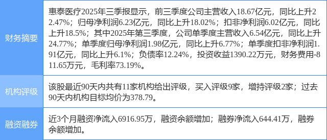 今日惠泰医疗(688617)涨6.09%,收盘报259.57元。