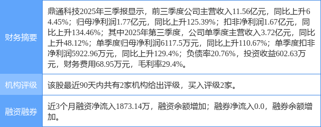 2025年10月27日,民生证券研究员崔若瑜,朱正卿发布了对鼎通科技的研报《2025年三季度报点评:业绩符合预期,AI驱动公司成长》,该研报对鼎通科技给出“买入”评级。研报中预计公司2025~2027年营业收入有望分别达16.03亿元、21.45亿元、27.18亿元,归母净利润有望分别达2.45亿元、3.26亿元、4.10亿元,对应PE分别为56/42/34X,我们认为行业高速发展的同时公司有望凭借自身技术优势快速成长,维持“推荐”评级。证券之星数据中心根据近三年发布的研报数据计算,该研报作者对此股的盈利预测准确度为55.05%。