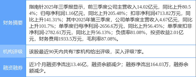 2025年10月25日,东吴证券研究员孙婷,武欣姝发布了对指南针的研报《2025年三季报点评:各项业务稳健发展》,该研报对指南针给出“买入”评级。研报中预计2025-2027年公司归母净利润分别为2.83/3.78/4.98亿元,对应PE分别为336/252/191倍,维持公司“买入”评级,期待麦高证券的发展,看好公司长期成长性。证券之星数据中心根据近三年发布的研报数据计算,该研报作者对此股的盈利预测准确度为67.33%。