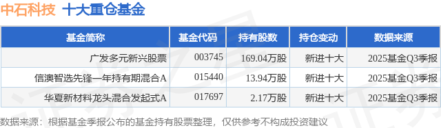 重仓中石科技的公募基金请见下表: