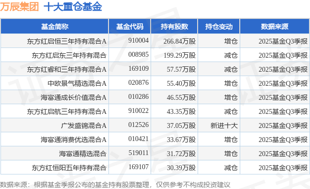 重仓万辰集团的前十大公募基金请见下表: