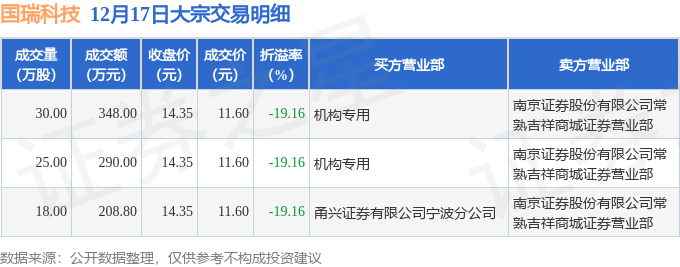 证券之星消息,12月17日国瑞科技发生大宗交易,交易数据如下: