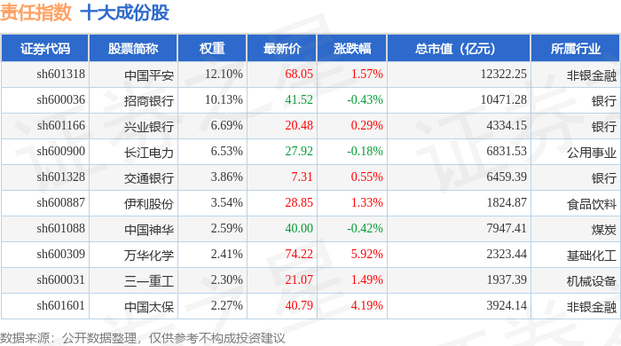 证券之星消息,12月17日,责任指数(000048)报收于1466.23点,涨1.0%,成交644.54亿元,换手率0.52%。当日该指数成份股中,上涨的有81家,大元泵业以10.0%的涨幅领涨,下跌的有15家,中国国贸以1.1%的跌幅领跌。