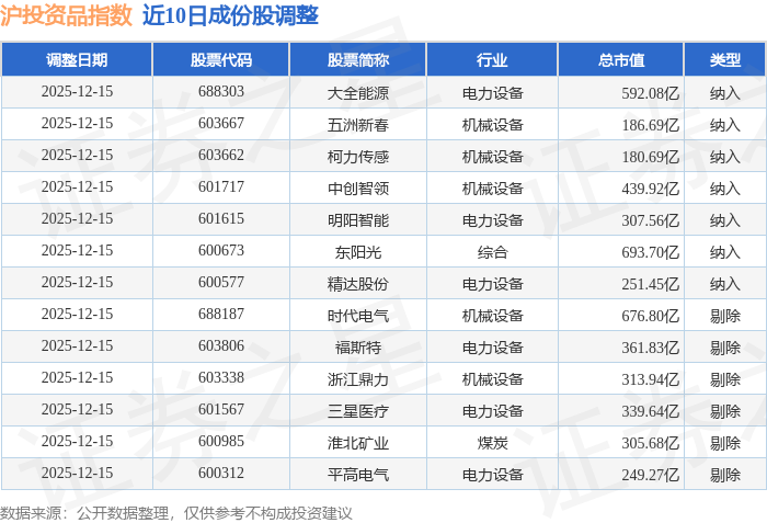 近10日内沪投资品(000102)指数成份股做了调整,新纳入了7只股票,剔除了6只股票。