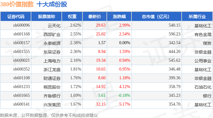 380价值(000118)指数十大成份股详情如下: