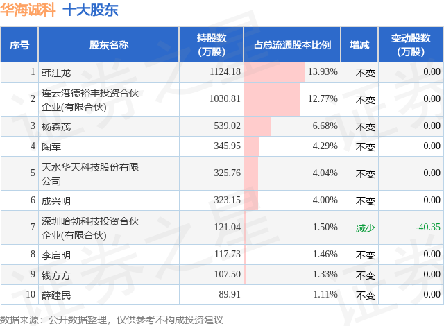 根据华海诚科2025年三季报公布的十大股东详情如下: