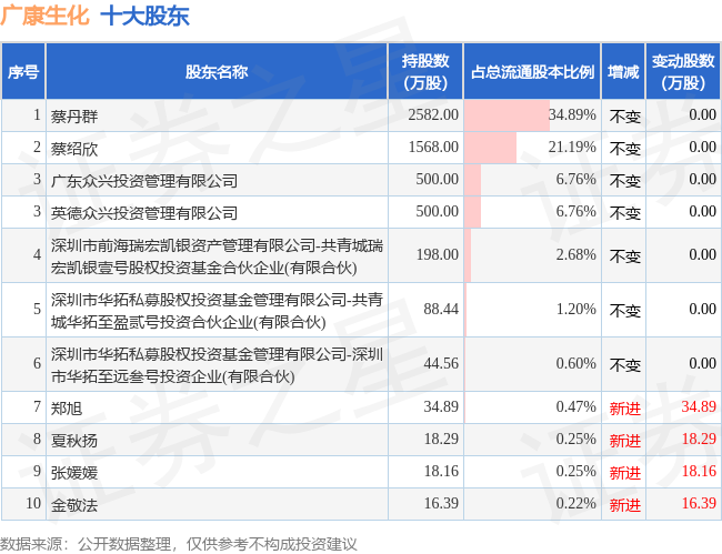 根据广康生化2025年三季报公布的十大股东详情如下: