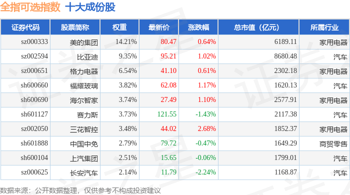 证券之星消息,12月17日,全指可选(000989)指数报收于5437.03点,涨1.06%,成交789.47亿元,换手率2.61%。当日该指数成份股中,上涨的有101家,飞龙股份以10.01%的涨幅领涨,下跌的有23家,莱克电气以6.01%的跌幅领跌。