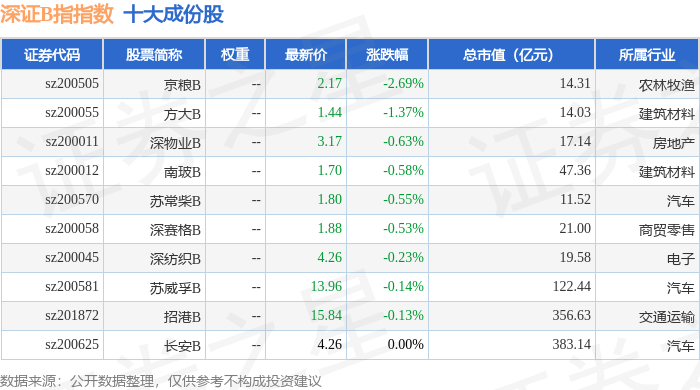 深证B指(399108)指数十大成份股详情如下: