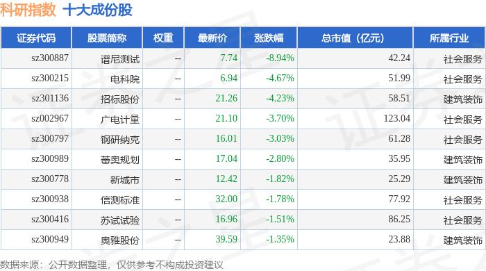 科研指数(399243)十大成份股详情如下: