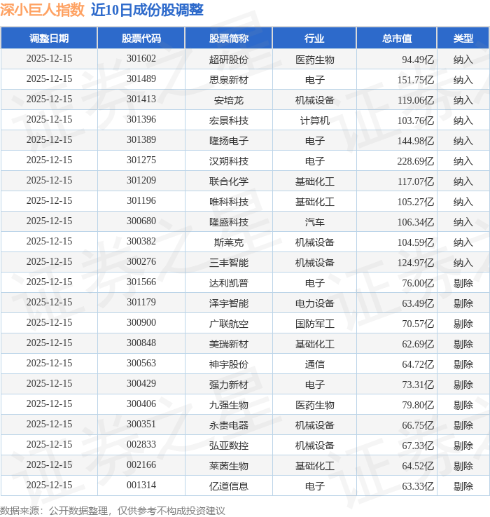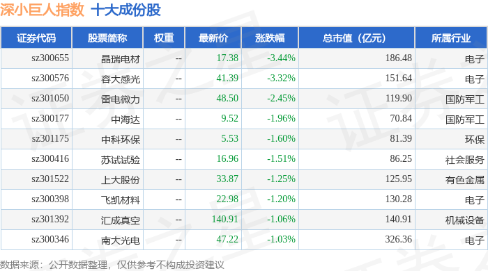 深小巨人(399268)指数十大成份股详情如下: