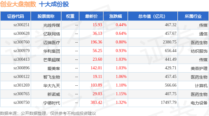 证券之星消息,12月17日,创业大盘(399293)指数报收于6481.98点,涨4.01%,成交1441.97亿元,换手率2.08%。当日该指数成份股中,上涨的有50家,新易盛以9.55%的涨幅领涨。
