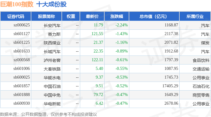 证券之星消息,12月17日,巨潮100(399313)指数报收于5421.17点,涨1.66%,成交2415.54亿元,换手率0.34%。当日该指数成份股中,上涨的有78家,新易盛以9.55%的涨幅领涨,下跌的有18家,长安汽车以2.24%的跌幅领跌。