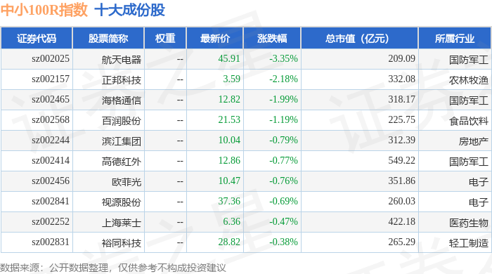 证券之星消息,12月17日,中小100R(399333)指数报收于9753.07点,涨2.15%,成交1103.82亿元,换手率1.41%。当日该指数成份股中,上涨的有85家,光迅科技以10.01%的涨幅领涨,下跌的有13家,航天电器以3.35%的跌幅领跌。