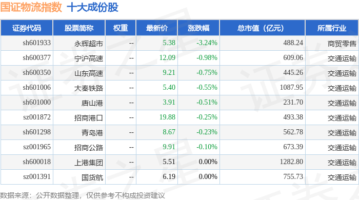 国证物流(399353)指数十大成份股详情如下:
