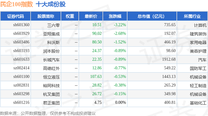 资金流向方面,民企100(399362)指数成份股当日主力资金净流入合计54.33亿元,游资资金净流出合计44.87亿元,散户资金净流出合计9.46亿元。成份股资金流向详情见下表: