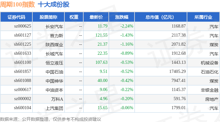 证券之星消息,12月17日,周期100(399402)指数报收于3756.1点,涨2.14%,成交1813.6亿元,换手率0.79%。当日该指数成份股中,上涨的有85家,深南电路以10.0%的涨幅领涨,下跌的有11家,长安汽车以2.24%的跌幅领跌。
