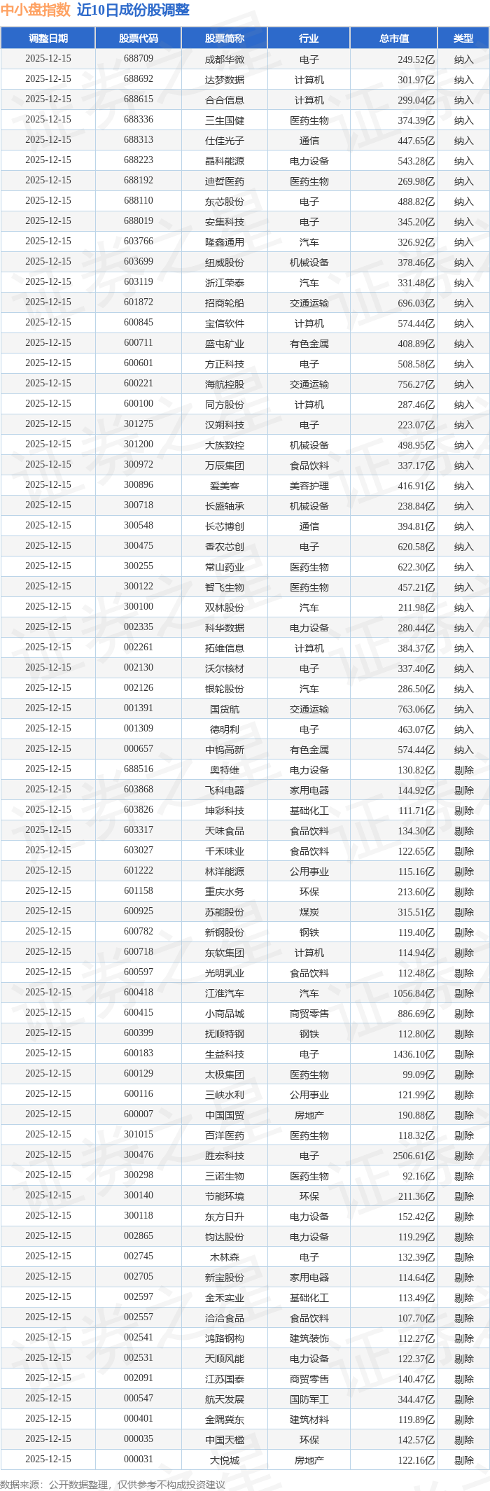 近10日内中小盘(399401)指数成份股做了调整,新纳入了35只股票,剔除了35只股票。